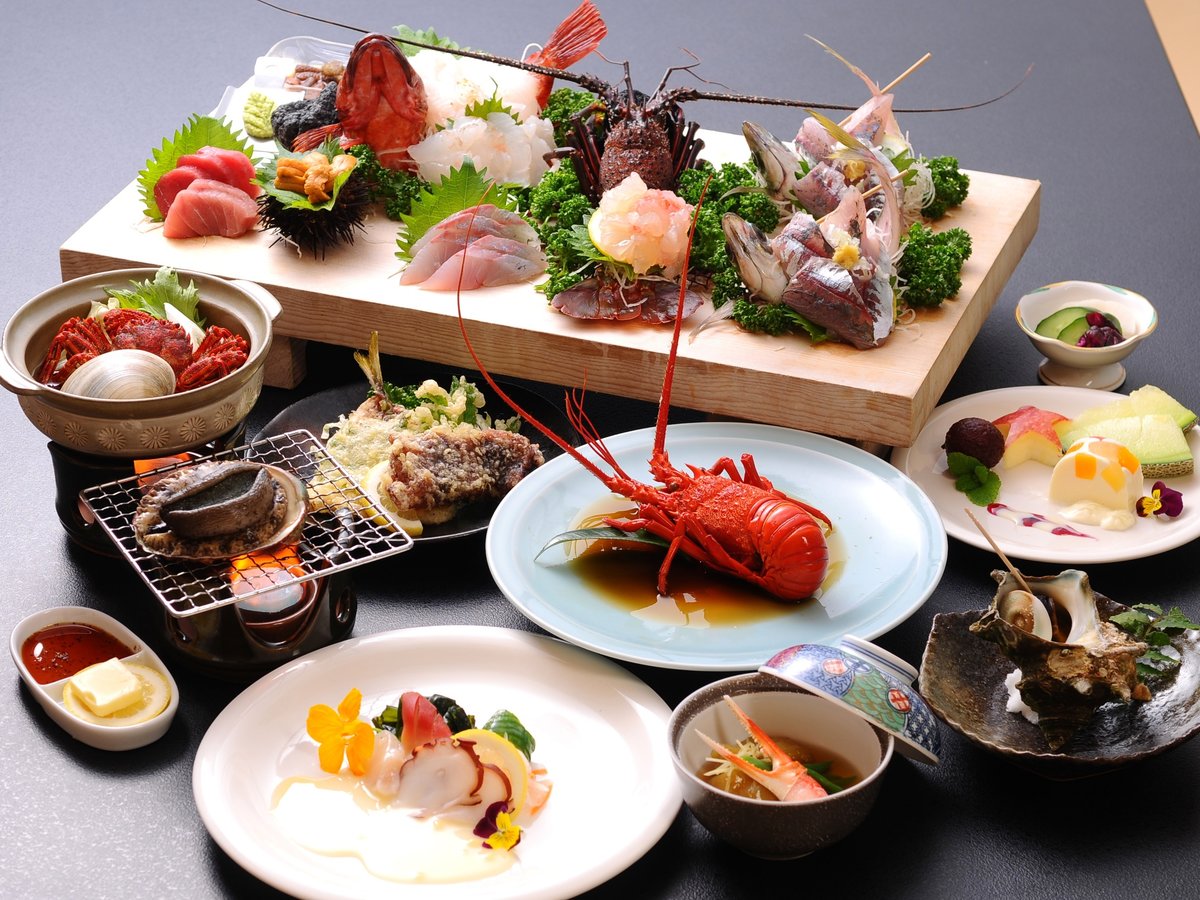 理由:金目鯛のしゃぶしゃぶや伊勢海老など、豪華食材のプランが豊富で、「部屋食・貸切風呂」がセットになったプランが充実しています。