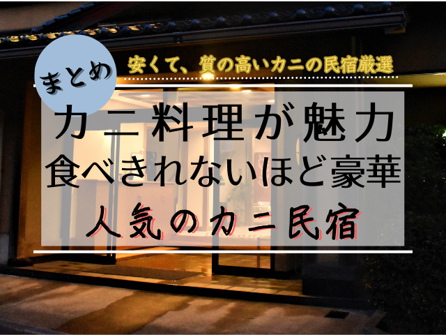 改めて、久美浜でカニが食べきれないほど豪華で安い民宿10選をまとめると、